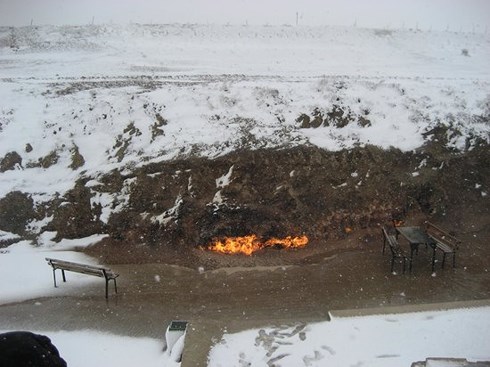 Ngọn lửa "vĩnh cửu" tại Yanar Dag.Yanar Dag được xem là vùng đất thiêng ở Azerbaijan vì sự kỳ lạ của nơi đây, khi mà ngọn lửa vĩnh cửu chưa bao giờ tắt trong suốt 4.000 năm qua.